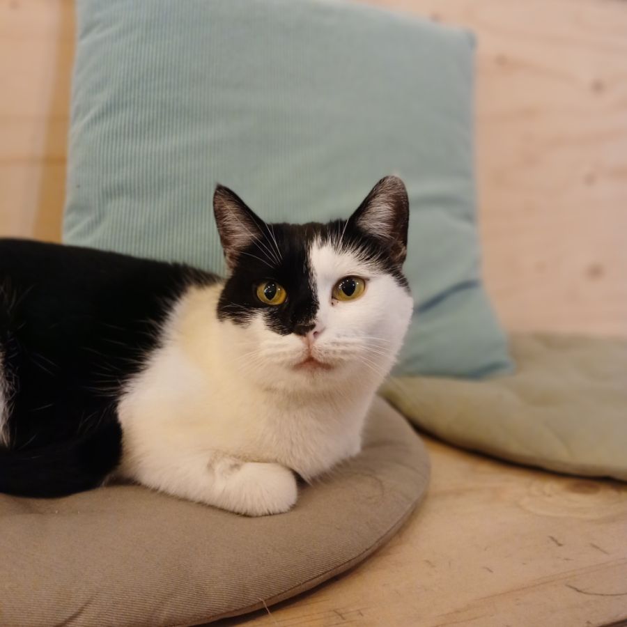 Blanche is een zwart-witte kattin. Ze is sociaal en laat zich graag aaien. Soms kan ze nog wat onzeker zijn en moet je haar vertrouwen winnen. Ze houdt niet van bruuske bewegingen.